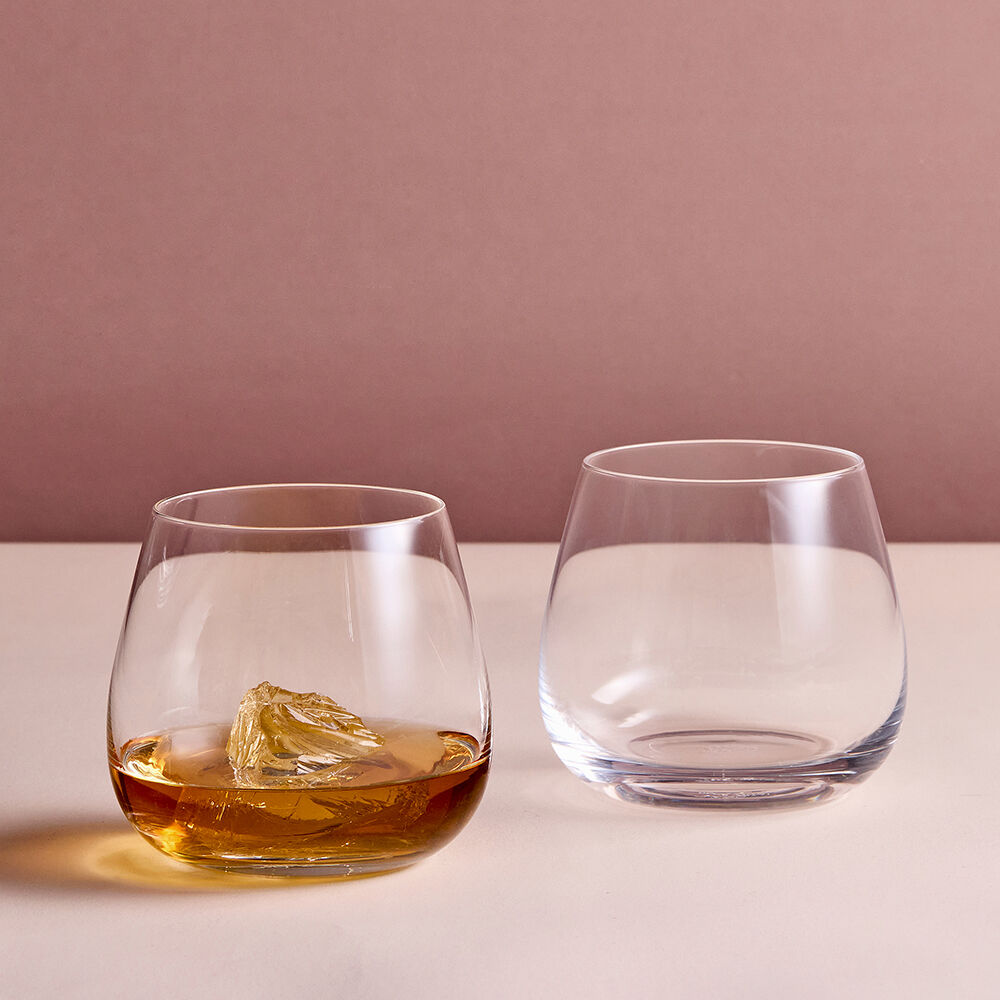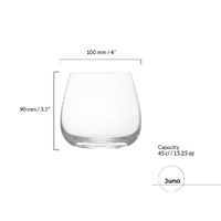 ASD10419 ASD JUNO DOF TUMBLERS SET OF 2 Juno was designed to blend the familiar with the modern. The bowls, broad and graceful, taper delicately for a silhouette that is both inviting and elegant. Throughout the range, each piece echoes this design in a subtly different way, creating a cohesive collection with a striking silhouette. Stemmed glasses in the Juno collection are further distinguished by the way the stems are pulled directly from the bowl, creating a delicate teardrop dimple at the base of each piece. Contemporary, wide based tumbler Modern shaped bowl with rounded corners Mouth blown and handmade by skilled craftsmen Hand wash recommended Designed in the UK Weight: 220 g Dimensions: 100 × 100 × 90 mm Colour: Clear Capacity: 45 cl Substrate: Glass