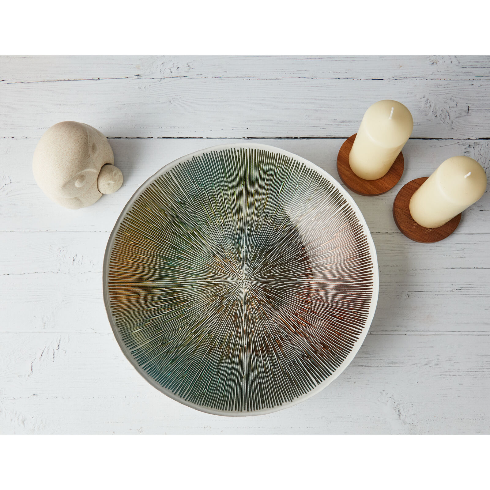RADIANCE BOWL Stylish and contemporary shape It works well in any dining room, living room, conservatory or hall Textured surface Hand decorated Colour: Multi-coloured Substrate :Glass Weight: 1150 g Dimensions: 330 × 330 × 75 mm This Radiance Bowl is incredible in so many ways! Be it its style and design, its size , the fact that it is hand painted, its versatility… and, of course, how much it adds to any room. Anton Studio Designs ‘ Decorative Bowls are available in a variety of designs and colours. From abstract and colourful designs, to watermelons; and glistening peacock feathers to Indian motifs, there are so many options within this collection. These bowls are perfect for either a practical use, such as a fruit bowl, or just purely to be used as decoration!